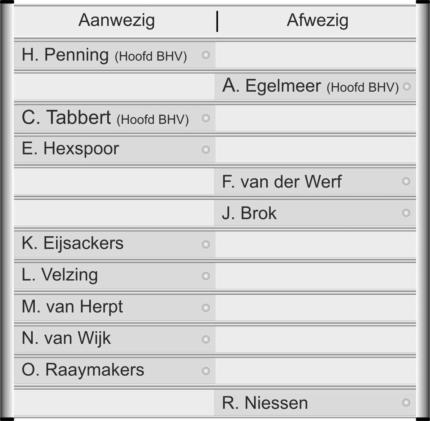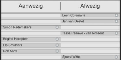 Aanwezig afwezig borden worden gebruikt bij de receptie, inkomsthallen, BHV hulpverleners, ontruimings plannen etc.