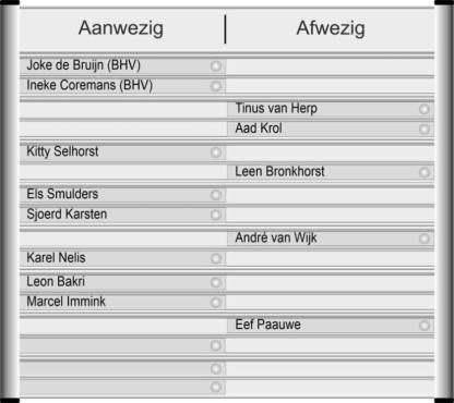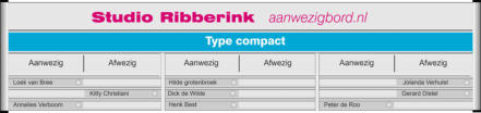 Aanwezigbord is onderdeel van Studio Ribberink sinds 1963. Nijverheidsstraat 60 Rijswijk 070-399 18 72. Prijzen zijn altijd exlusief btw.